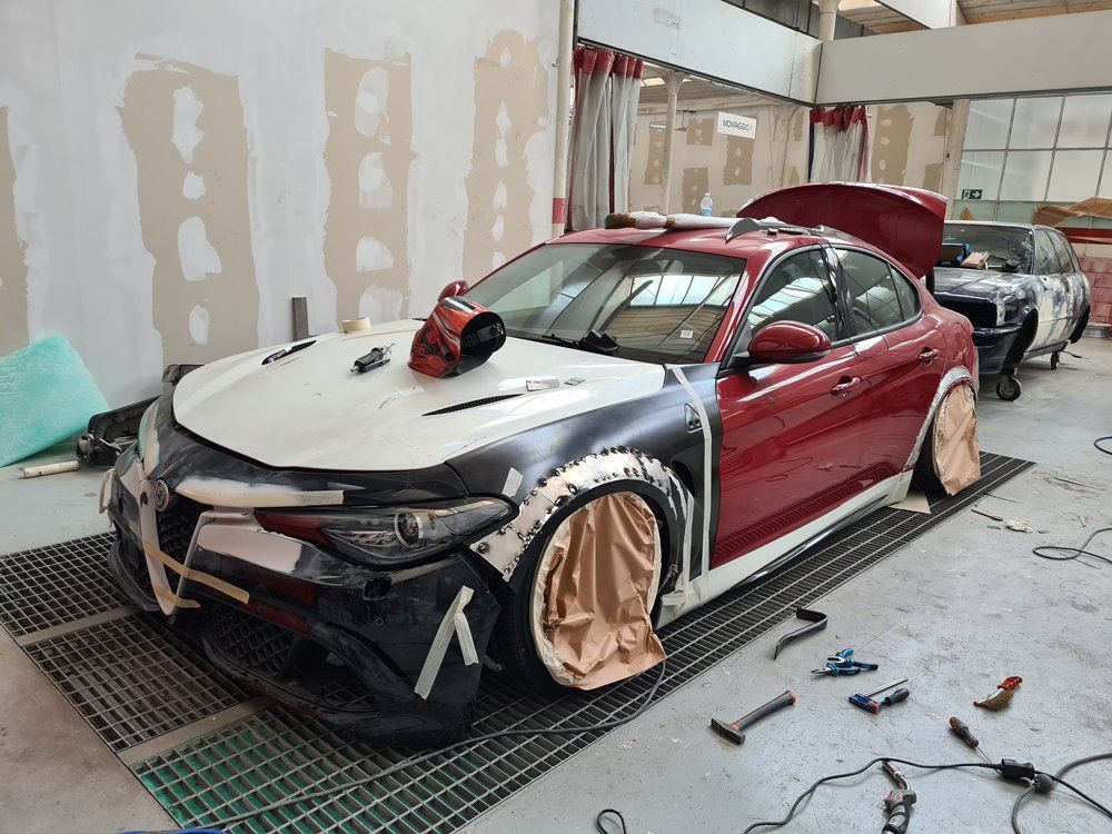 Gli interventi hanno interessato la carrozzeria con Body kit esterno quadrifoglio in vero carbonio, interventi in lamiera e verniciatura triplo strato Rosso Competizione.