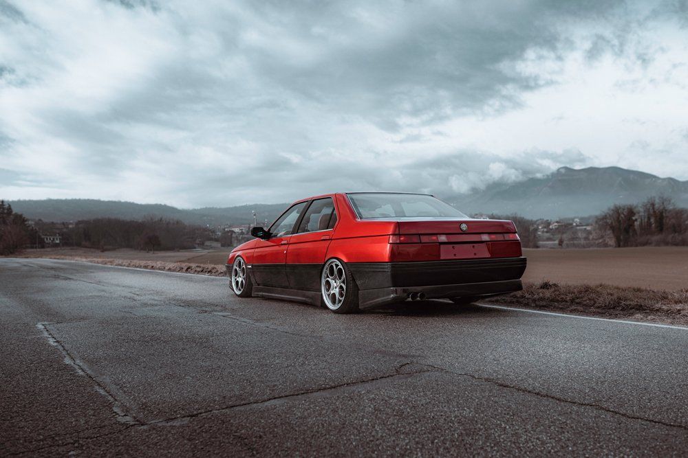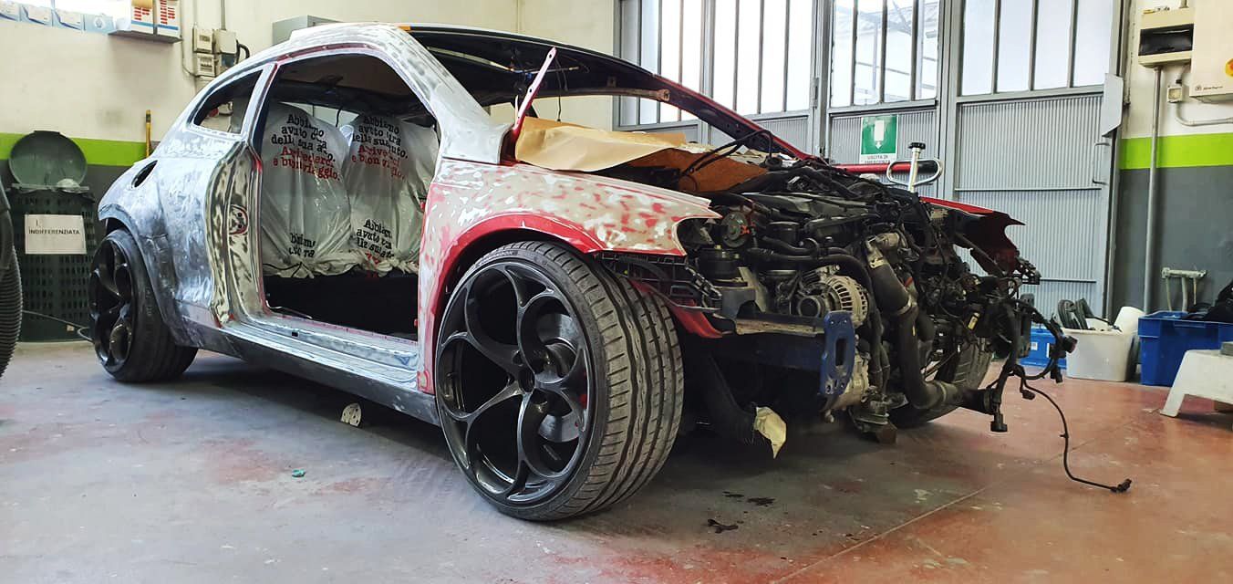 Anche quì è stato eseguito un lavoro importante sull'estetica con un body kit quadrifoglio, sapientemente modificato con allargamenti in lamiera e verniciatura triplo strato Rosso Competizione.